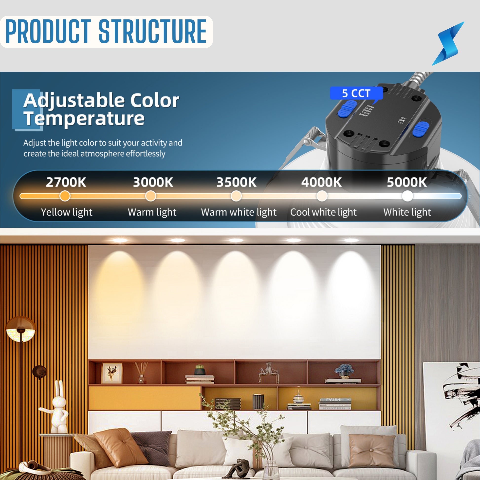 5-CCT Selectable: Choose between 2700K, 3000K, 3500K, 4000K, or 5000K to perfectly match your environment's mood.